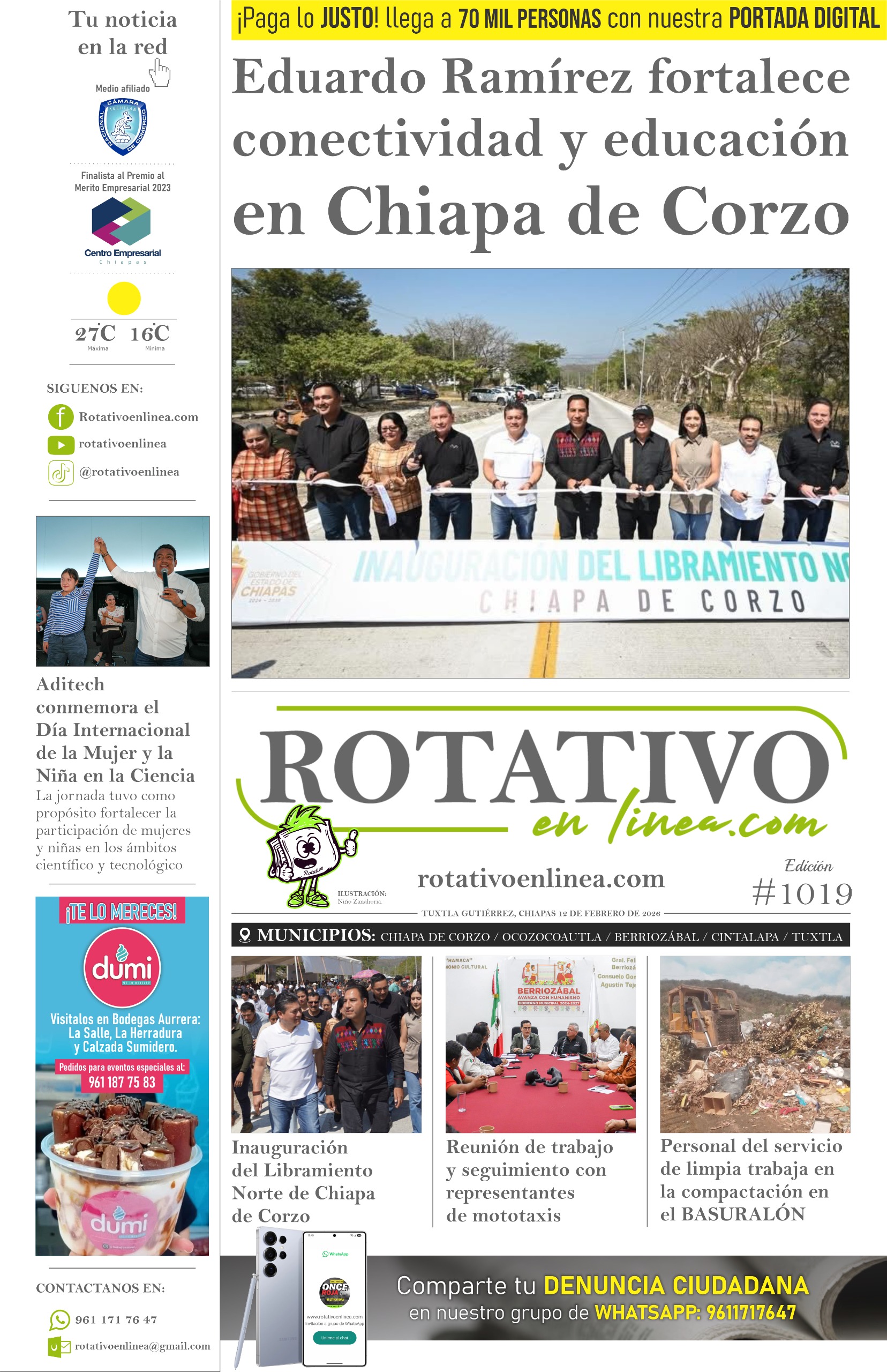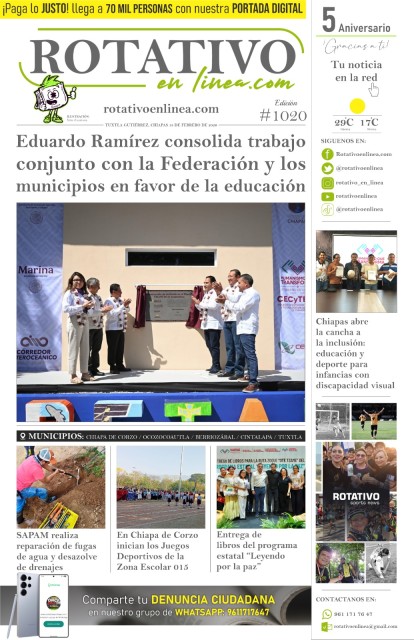 Inteligencia Artificial al servicio de la educación “Las y los jóvenes son nuestro presente y nuestro futuro”: Óscar Alberto Aparicio Avendaño TecNM Campus Cintalapa realiza Foro “Mujer Tec en la Ciencia” Agiliza IMSS Chiapas atención oncológica en Tapachula mediante sistema de identificación prioritaria Reconocen a Chiapas por el esfuerzo sostenido en la prevención de embarazos en adolescentes Cecytech y sector salud fortalecen la docencia clínica mediante diplomado “Prepa intercultural”: Historias que cruzan fronteras y encuentran futuro en el aula Estudiantes del Cecytech participan en actividades por la ciencia y la equidad Registra Chiapas una disminución en casos de sarampión Isstech fortalece atención con apertura de farmacia en Casa Geriátrica