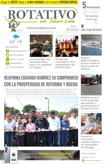 Cecytech invita al recital poético "A estas horas, aquí" TBC fortalece infraestructura educativa con obras en el TBC 04 “Escuadrón 201” Sentipensar comunitario: claves antropológicas del Lekil Kuxlejal contemporáneo Educación empeña su palabra con los 12 municipios de la esperanza Refuerzan seguridad de estudiantes con dispositivos “Mujer Segura” en Cobach Impulsa Cecytech la innovación estudiantil con concurso estatal de prototipos y desarrollo de aplicaciones Unicef México, Fundación aeioTu y Coneculta inauguran Sala Bebé en el Museo de la Niñez Chiapas fortalece la educación de la primera infancia con entornos de aprendizaje innovadores Impulsan talento joven e innovación con el Premio Emprendedor Canacintra 2026 “Aquí tienen aliados, aquí tienen gente con la que pueden contar”: Óscar Alberto Aparicio Avendaño