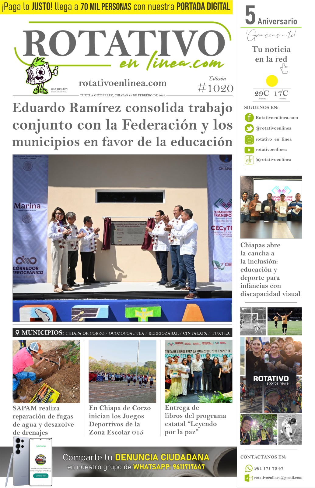 10 de diciembre de 2025. ACCUFIDE anuncia competencias deportivas gratuitas en marco de la Feria Chiapas 2025