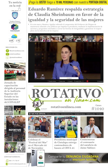 Jaime Sabines, la voz que moverá las mentes de Chiapas: Roger Mandujano Celebran centenario del poeta mayor de Chiapas Conmemoran el centenario del natalicio de Jaime Sabines Cecytech y TecNM Cintalapa consolidan alianza académica con firma de convenio Certifican en enfoque de igualdad a servidoras y servidores públicos de la Secretaría de Educación Cobach transforma sus espacios de trabajo Fortalecen Cecytech y SEyT vinculación para fomentar el emprendimiento estudiantil Ijech apuesta por la transformación juvenil con jornada de prevención y acompañamiento en Villa Crisol Arranca el programa Calles Humanistas en la colonia 27 de Febrero IAP Chiapas se reúne con ayuntamientos para la detección de necesidades en materia de fortalecimiento municipal