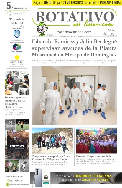 Cecytech consolida inicio de clases con docentes actualizados Comienza el proyecto Música para el Buen Vivir del Coneculta Exhorta IMSS Chiapas a completar esquemas de vacunación contra sarampión Hambre, grayas y amorosa a través de la obra “Liminal” Eduardo Ramírez consolida trabajo conjunto con la Federación y los municipios en favor de la educación Secretaría de Finanzas impulsa modernización y refuerza compromiso con la transparencia Cecytech y Secretaría de Seguridad del Pueblo firman convenio para fortalecer la prevención del delito Chiapas abre la cancha a la inclusión: educación y deporte para infancias con discapacidad visual Cecytech fortalece la excelencia académica con la 1ª Jornada Académica Estatal 2026 Inteligencia Artificial al servicio de la educación