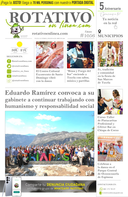 Eduardo Ramírez destaca avances del programa Chiapas Puede y reconoce a las y los alfabetizadores Celebra el CBTis 169 el Día internacional del Libro en Cintalapa de Figueroa CBTIS 144 realiza con éxito su primer FESTILIBRO en el marco del Día Mundial del Libro y los Derechos de Autor Realiza IMSS Chiapas 7 mil 900 pruebas mensuales de papanicolaou para la detección oportuna Realiza IMSS Chiapas procuración de órganos en hospital de Tapachula Un paso hacia la justicia laboral: inauguran sala de lactancia en Educación CECyT 10 Simojovel lleva talento, ciencia e innovación al Nacional 2026 TecNM Cintalapa brilla a nivel nacional con reconocimiento en Excelencia Dual 2026 De la palabra al encuentro: la alfabetización que transforma comunidades Impulsa Cecytech el desarrollo integral con Encuentro Estatal Deportivo Juvenil