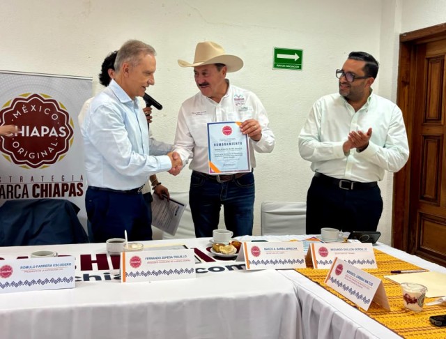 En el marco del encuentro, el secretario recibió el nombramiento como titular de la Ventanilla de Ganadería y Productos en Fresco de la Estrategia Marca Chiapas, responsabilidad que refuerza la certificación, validación de procesos y promoción comercial del sector pecuario estatal.
