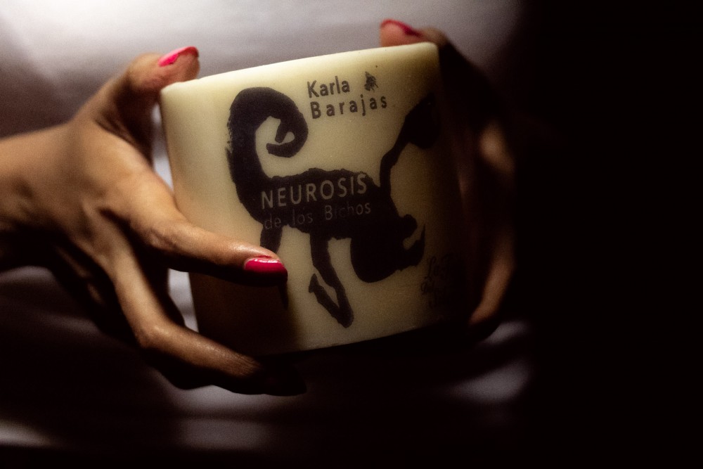 Karla Barajas sentada en una silla de su comedor, trae el cabello suelto, una blusa blanca y pantalón negro. Sonríe. La luz del sol se ha desvanecido por completo. Ahora mira apoyada por una luz artificial que cuelga del techo de su casa. Hace unos días encontró nucús y los guardó en un recipiente de plástico. Ha ido a la cocina para sacarlo de su refrigerador y mostrarnos a la hormiga grande.