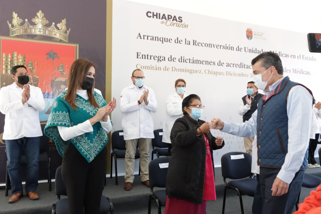 Al entregar dictámenes de acreditación a clínicas y hospitales, los cuales son otorgados por instancias a nivel nacional a establecimientos de salud que cumplen con los parámetros de capacidad, seguridad y calidad en la atención de las y los usuarios, el gobernador expresó que es un orgullo recibir estas certificaciones, pues representan una motivación a seguir adelante en el trabajo por Chiapas, al tiempo de agradecer a las heroínas y héroes por la labor profesional y humana que realizan en beneficio de la población.