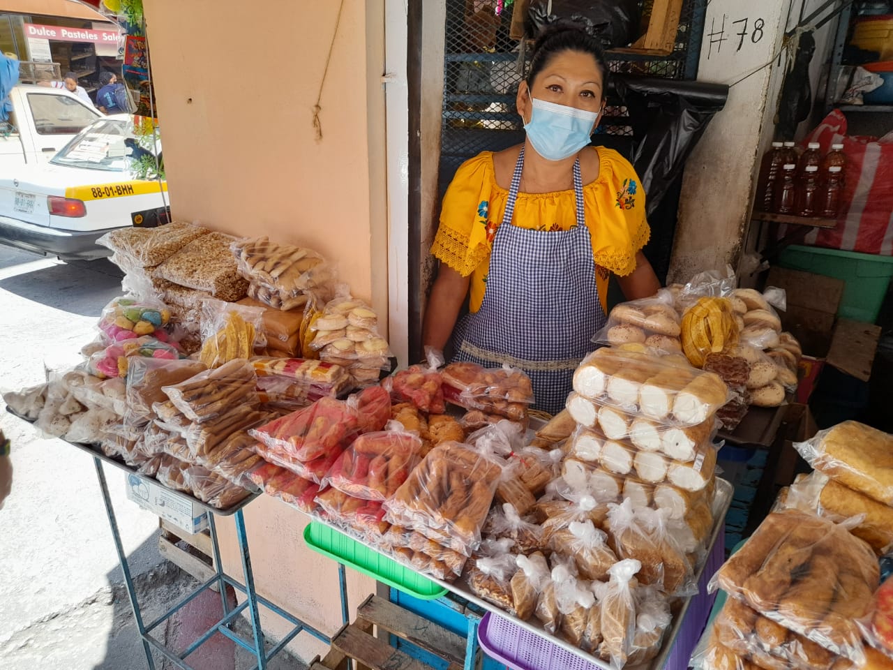 "Empezamos vendiendo con mi mamá Doña Andrea sobre unas mesas que se ponían en las banquetas del mercado sobre la Cuarta Sur, aun no estábamos establecidos formalmente", relata Doña Keny mientras acomoda sus dulces.