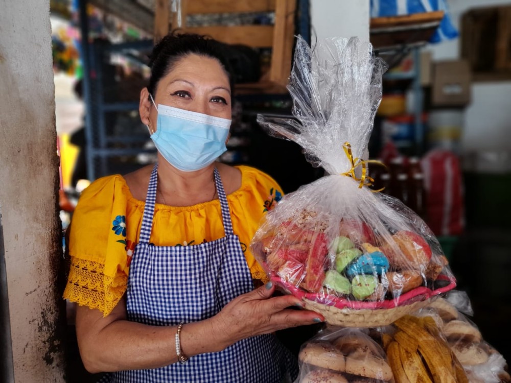 "Así fue como nos establecimos en este espacio, gracias a Dios y al apoyo que nos brindaron, y aquí seguimos trabajando por la familia" explica mientras arregla sus canastas de dulces.