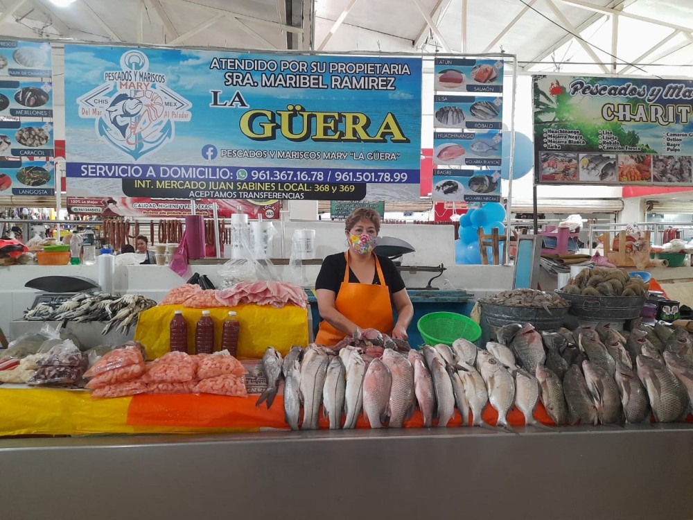 Doña Maribel Ramírez Morales mejor conocida por “La Güera”, nos plática sus inicios en el Mercado Juan Sabines, y el cómo poco a poco fue consolidando su negocio de mariscos en la capital chiapaneca.