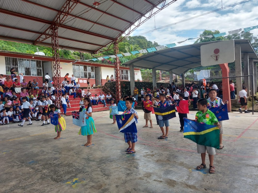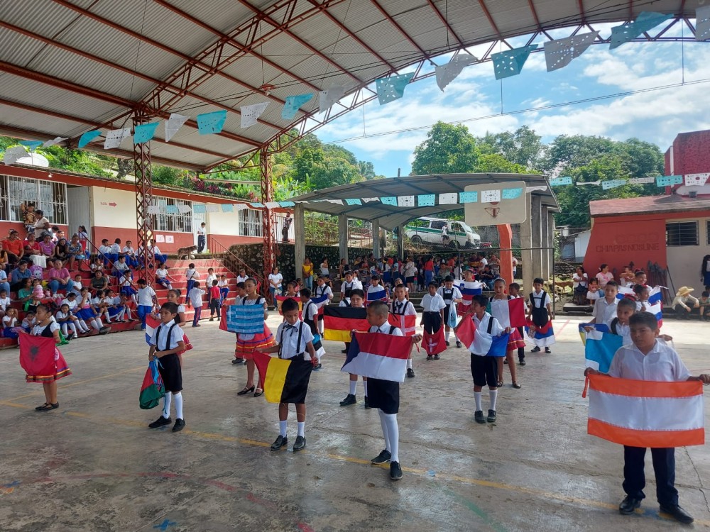 En la mañana de este lunes, día en que conmemoramos el aniversario de las Naciones Unidas, la Escuela Primaria “24 de octubre” de la localidad El Triunfo, Municipio de Escuintla, conmemoró en el marco de esta festividad un aniversario más de su fundación.