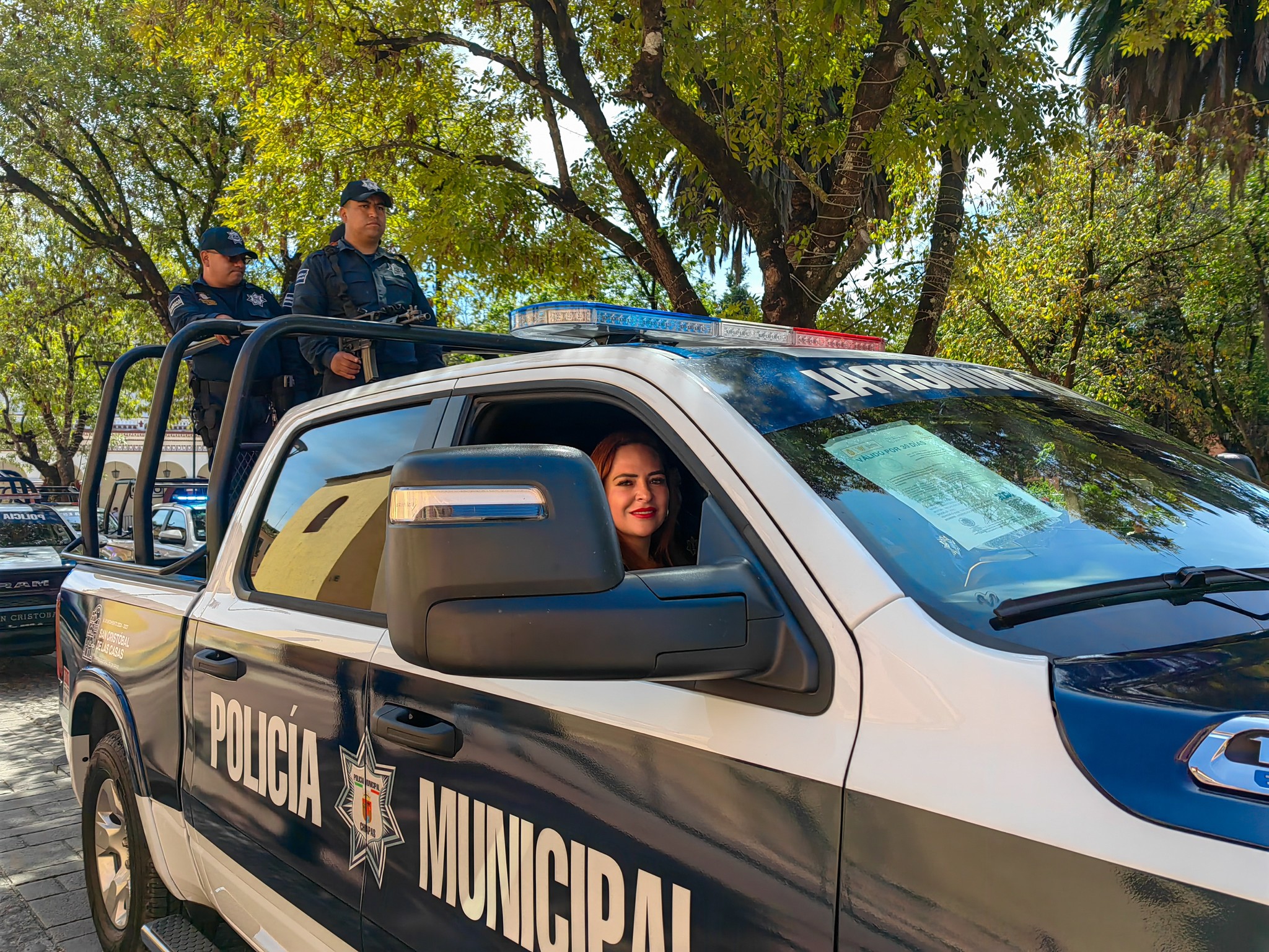 Detalló que se están entregando 4 nuevas unidades tipo versa para la Dirección de Tránsito Municipal, y 7 camionetas tipo RAM totalmente equipadas para la Dirección de Policía; “el compromiso es fortalecer aún más el sistema de seguridad por el bien de todos”.