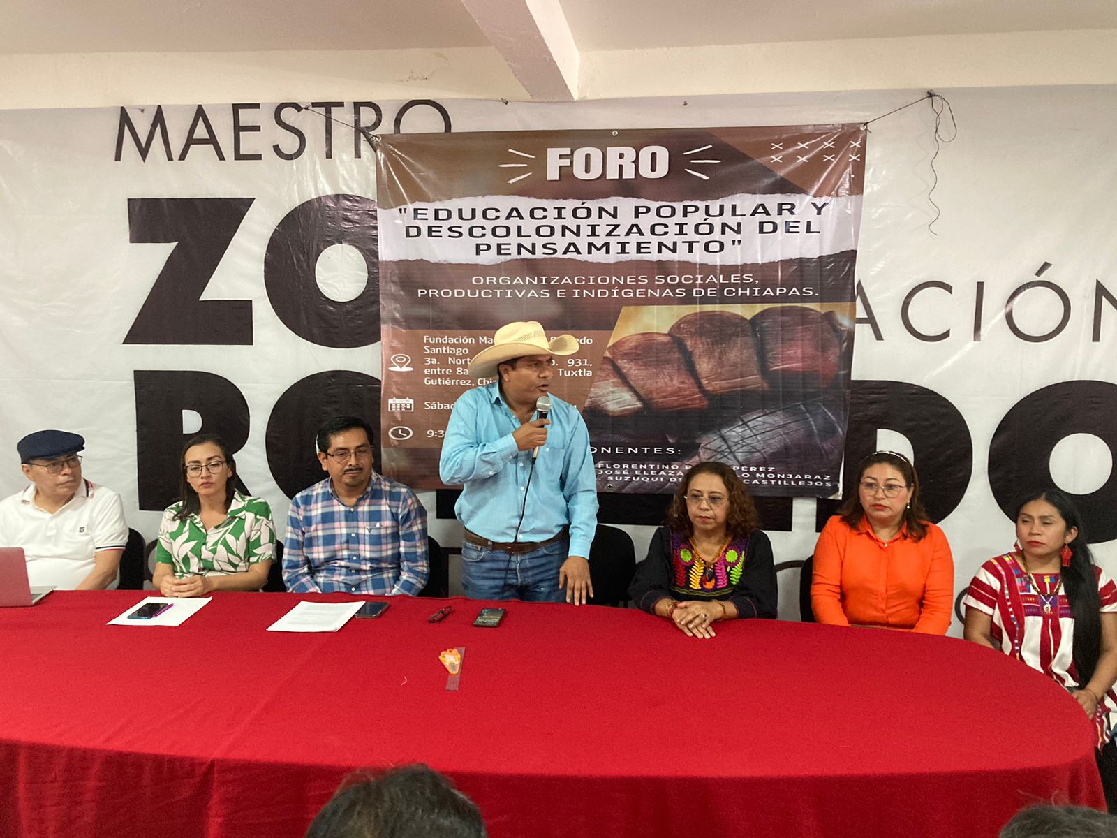 Con la disertación de los destacados ponentes Florentino Pérez Pérez, José Eleázar Farelo Mojaráz y Suzuki del Pilar Castillejos Reyes, se efectuó en Tuxtla Gutiérrez el sexto foro temático “Educación popular y descolonización del pensamiento”, serie de eventos que impulsa el movimientos de organizaciones sociales, productivas e indígenas de Chiapas.