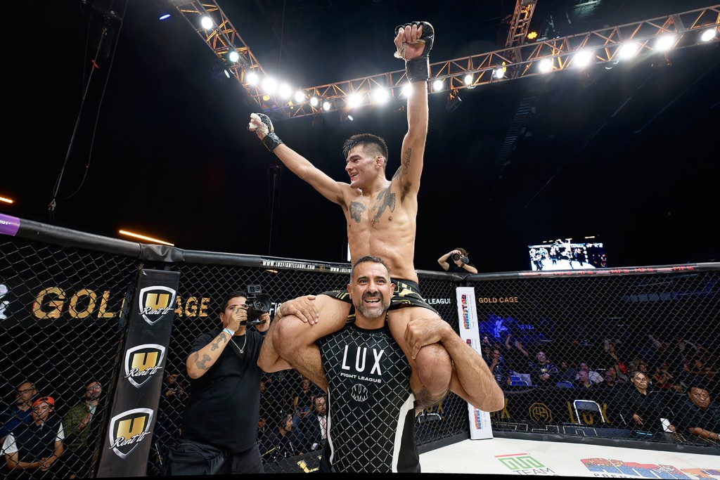 En la contienda coestelar, el capitalino Rodrigo “Kazula” Vargas (16-6-0) derrotó por sumisión al colombiano Alejandro “Noble” Cerquera (5-2-0) para quedarse con el cetro de mundial de peso ligero de LUX Fight League.