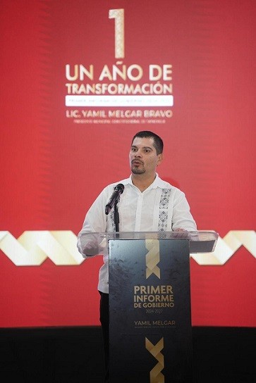 En representación del gobernador del estado, Eduardo Ramírez Aguilar, el secretario de Seguridad del Pueblo (SSP), Óscar Alberto Aparicio Avendaño, asistió al Primer Informe de Gobierno del presidente municipal constitucional de Tapachula, Yamil Melgar Bravo, aliado fundamental para la pacificación del estado, respaldando los esfuerzos realizados en la región.