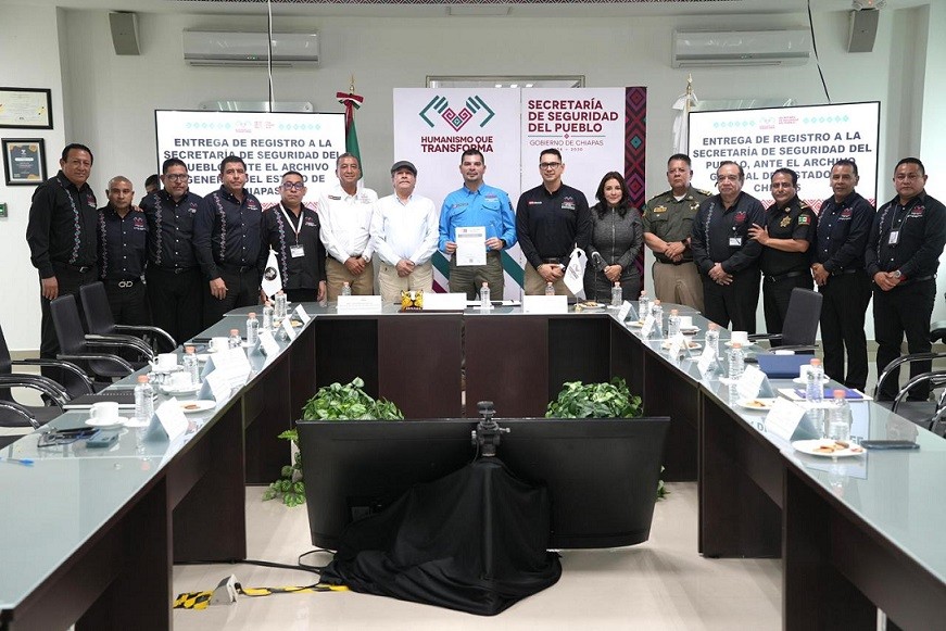 En cumplimiento con la transparencia y la legalidad, el secretario de Seguridad del Pueblo, Óscar Alberto Aparicio Avendaño, junto al coordinador general de Administración y Finanzas, Hugo Alejandro Zúñiga Román; el subsecretario de Inteligencia e Investigación, José Octavio García Macías; el subsecretario de la Guardia Estatal Vial Preventiva y de Turismo, Guillermo López Murúa; el subsecretario de Sanciones Penales y Medidas de Seguridad, Zein Jerónimo Gil; y mandos de la SSP, recibió formalmente la entrega del registro de la Secretaría de Seguridad del Pueblo (SSP) ante el Archivo General del Estado de Chiapas a manos del director, Carlos Román García.