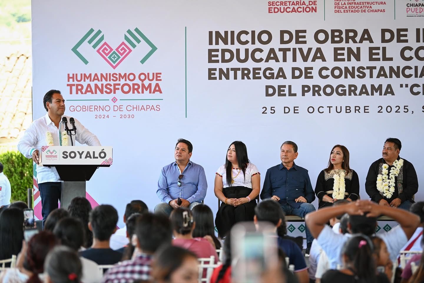 En representación de las y los beneficiarios, Raúl Pérez Hernández reconoció la visión del gobernador al implementar estrategias que mejoran la calidad de vida del pueblo, como el programa Chiapas Puede, que ha brindado a las y los soyaltecos la oportunidad de alfabetizarse y acceder a un futuro con más oportunidades.