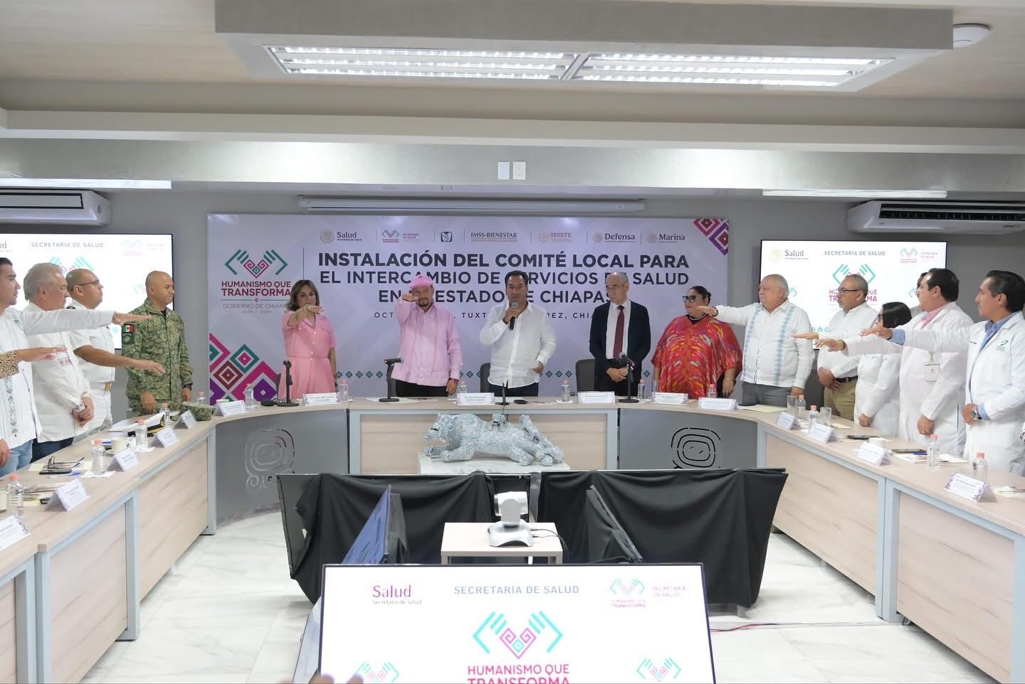El gobernador Eduardo Ramírez Aguilar atestiguó la instalación del Comité Local para el Intercambio de Servicios de Salud en el Estado de Chiapas, donde reafirmó que el gobierno de la Nueva ERA es aliado de la política de salud que impulsa la presidenta Claudia Sheinbaum Pardo, al demostrar que esta estrategia es la mejor vía para garantizar el derecho de la población a servicios médicos dignos y de calidad, especialmente para los sectores más vulnerables.