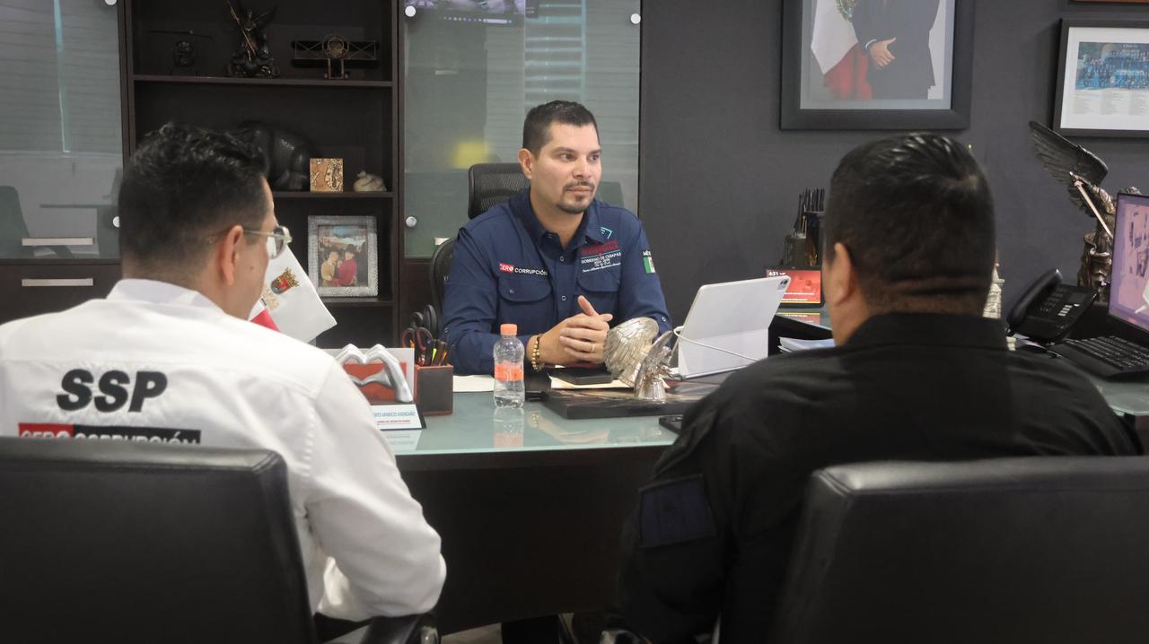 Con el compromiso de garantizar la tranquilidad y el bienestar de la población, el titular de la Secretaría de Seguridad del Pueblo (SSP) , Óscar Alberto Aparicio Avendaño, en coordinación con el subsecretario de Seguridad del Pueblo, Álvaro Serrano Escobedo y el coordinador general de Administración y Finanzas, Hugo Alejandro Zúñiga Román, llevaron a cabo una reunión de trabajo en donde se fortalecieron las estrategias de seguridad terrestres y aéreas en distintos puntos de la entidad.