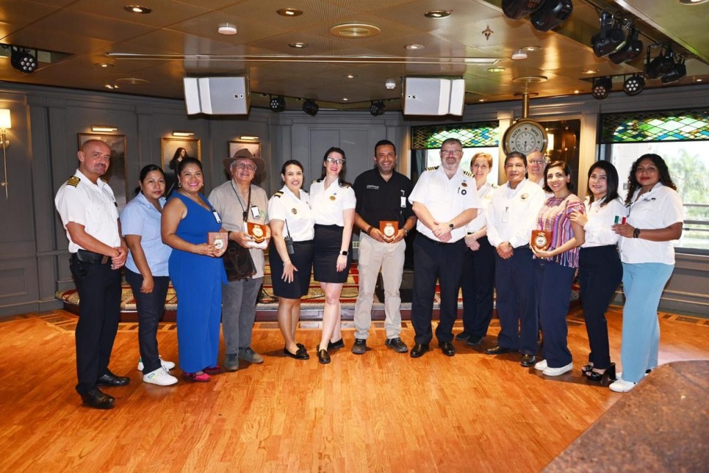 La ceremonia de recepción e intercambio de placas fue encabezada por el coordinador general ejecutivo de la Secretaría de Turismo estatal, Segundo Guillén Gordillo, agradeciendo al capitán y a su tripulación su confianza en Puerto Chiapas.