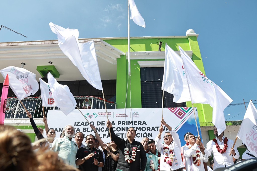 En un ambiente de emoción y orgullo comunitario, el gobernador Eduardo Ramírez Aguilar encabezó en el municipio de Nicolás Ruiz el levantamiento de la primera bandera blanca conmemorativa por la alfabetización. Al referirse a este momento, destacó que se trata de un paso firme en la transformación del estado y subrayó que uno de sus mayores anhelos es que el gobierno de la Nueva ERA sea recordado por vencer la ignorancia y devolver la esperanza de una mejor calidad de vida al pueblo chiapaneco.
