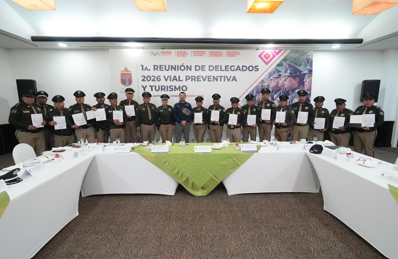 En el marco de la Primera Reunión de Delegados 2026 Vial Preventiva y Turismo, el titular de la SSP realizó la entrega de nombramientos a 16 elementos de la Guardia Estatal Vial Preventiva, como un acto que representa confianza, reconocimiento y responsabilidad que la institución deposita en cada uno de ellos.