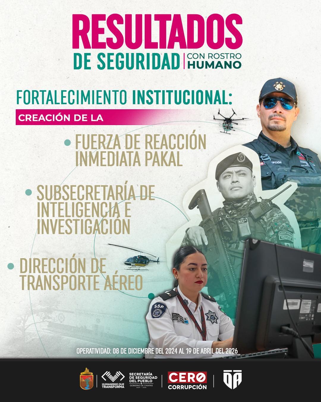 Como parte de la estrategia estatal de seguridad que impulsa el gobernador del estado, Eduardo Ramírez Aguilar, y el liderazgo del titular de la SSP para garantizar el Estado de derecho, se creó la Fuerza de Reacción Inmediata Pakal (FRIP), un grupo de fuerzas especiales altamente capacitado en delitos de alto impacto para hacer frente a células delictivas.